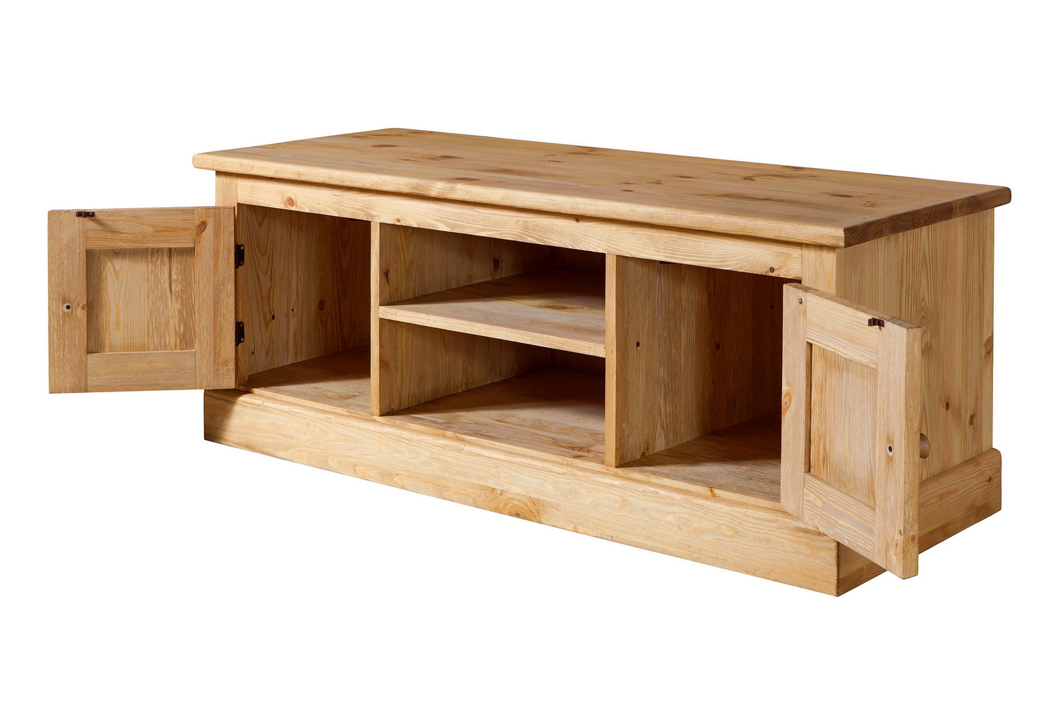 Корпус, полки и дверцы изготовлены из массива сосны.